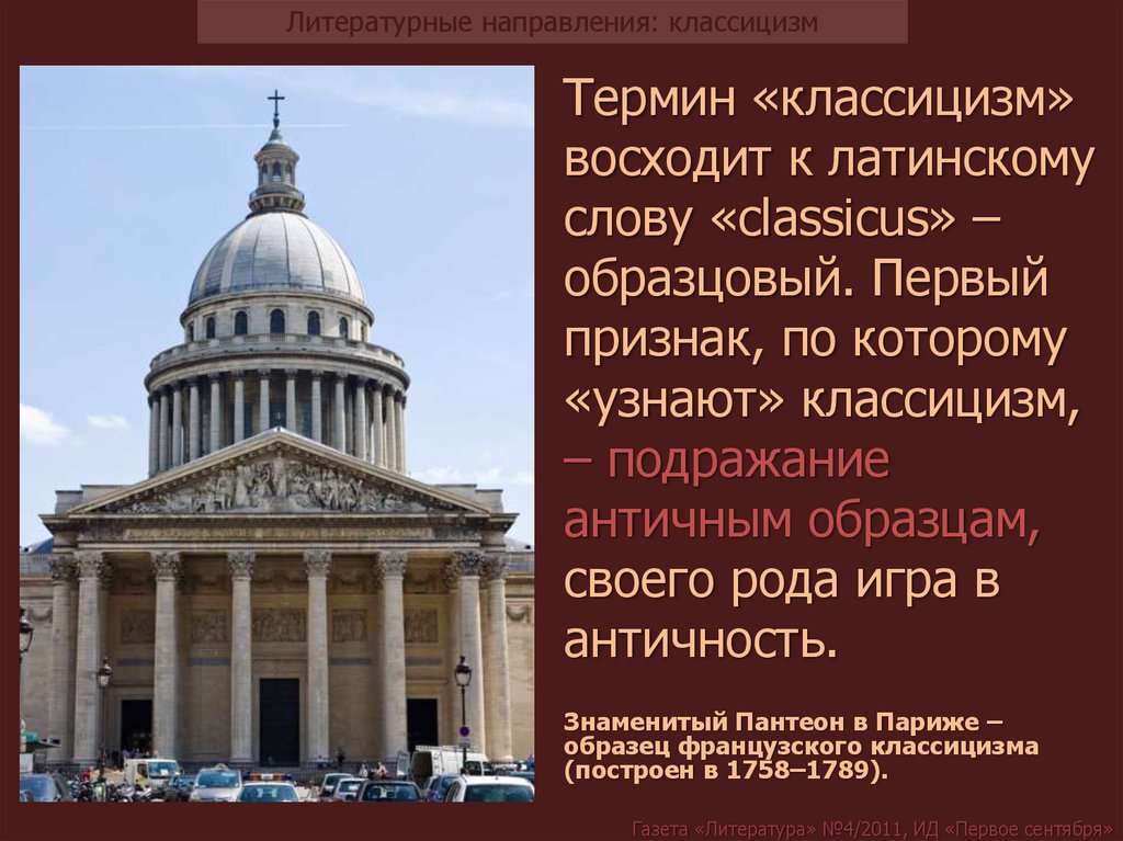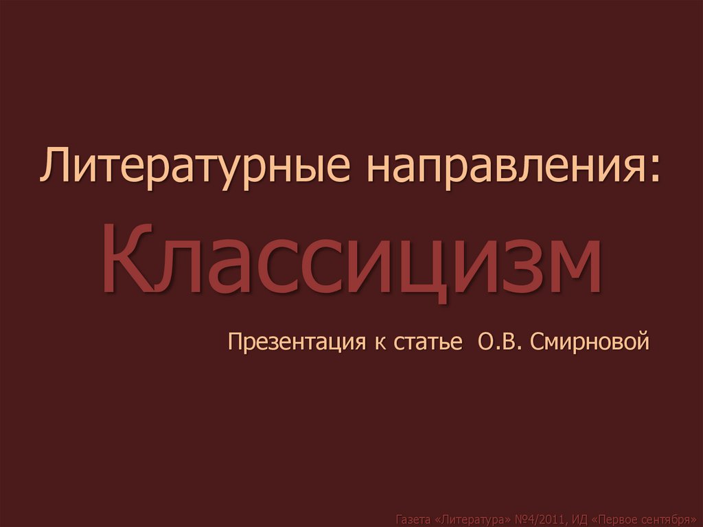 Литературные направления: классицизмГазета «Литература» №4/2011, ИД «Первое сентября»