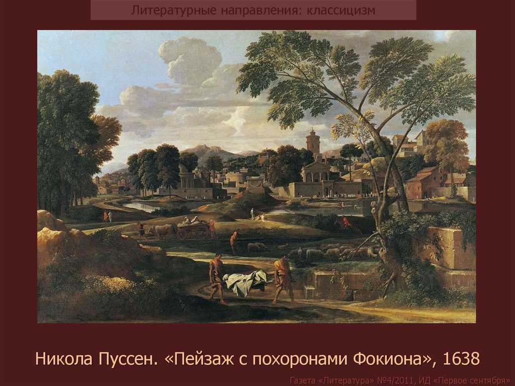 Литературные направления: классицизмНикола Пуссен. «Пейзаж с похоронами Фокиона», 1638