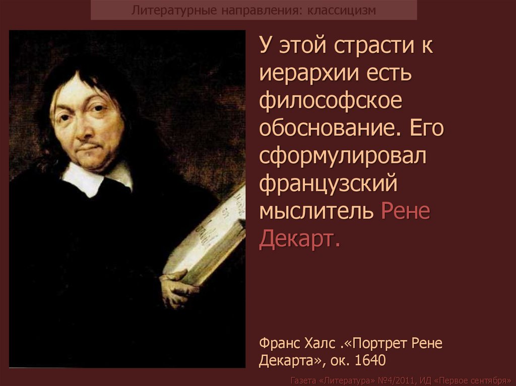 Литературные направления: классицизмДекарт искал ответа на