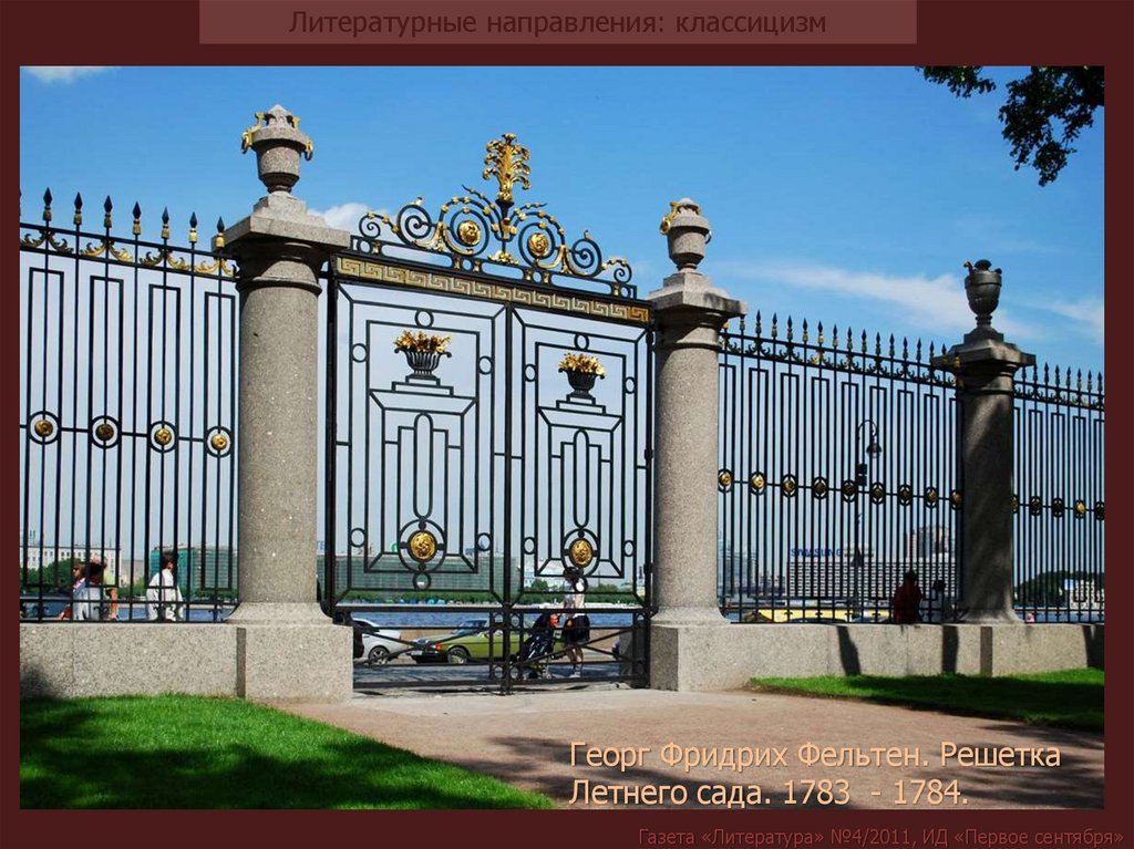 Литературные направления: классицизмГеорг Фридрих Фельтен. Решетка