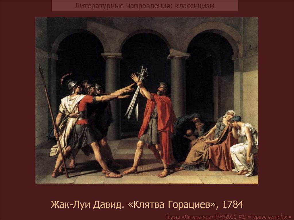Литературные направления: классицизмЖак-Луи Давид. «Клятва Горациев», 1784