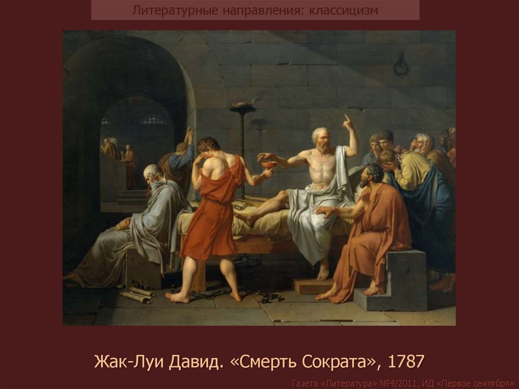 Литературные направления: классицизмЖак-Луи Давид. «Смерть Сократа», 1787