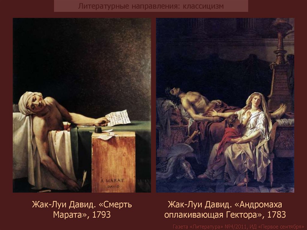 Литературные направления: классицизмЖак-Луи Давид. «Смерть