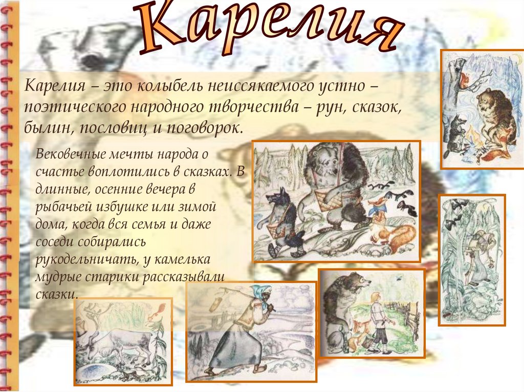 Карелия – это колыбель неиссякаемого устно –поэтического народного творчества – рун, сказок,