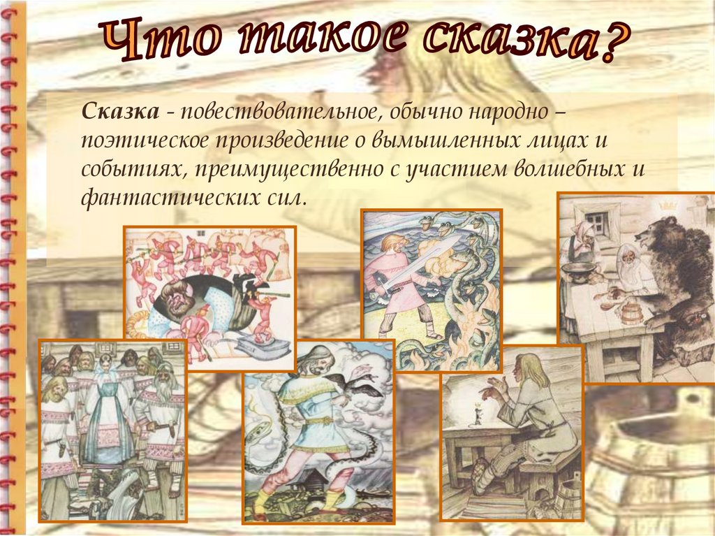 Сказка - повествовательное, обычно народно –поэтическое произведение о вымышленных лицах и