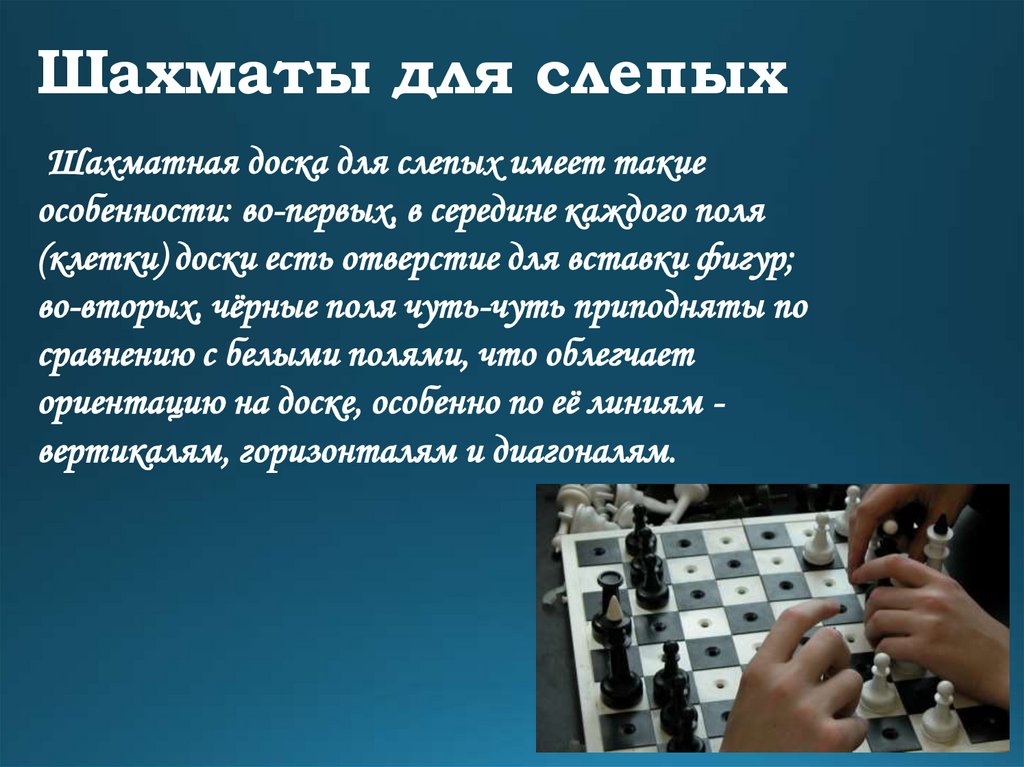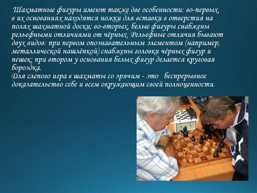 Для слепого игра в шахматы со зрячим - это беспрерывное