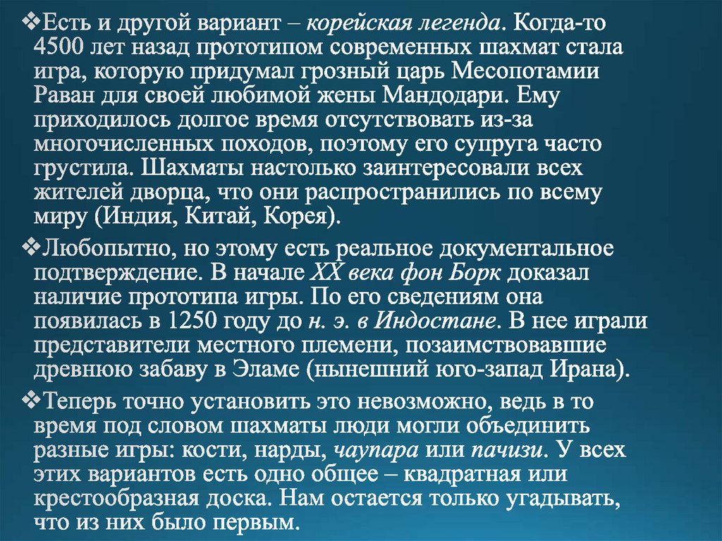 полях шахматной доски; во-вторых, белые фигуры снабжены