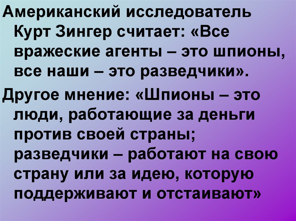 «Шпион – это лазутчик,скрытный разведчик и