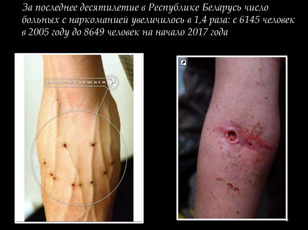 За последнее десятилетие в Республике Беларусь числобольных с наркоманией увеличилось в 1,4 раза: с 6145 человек