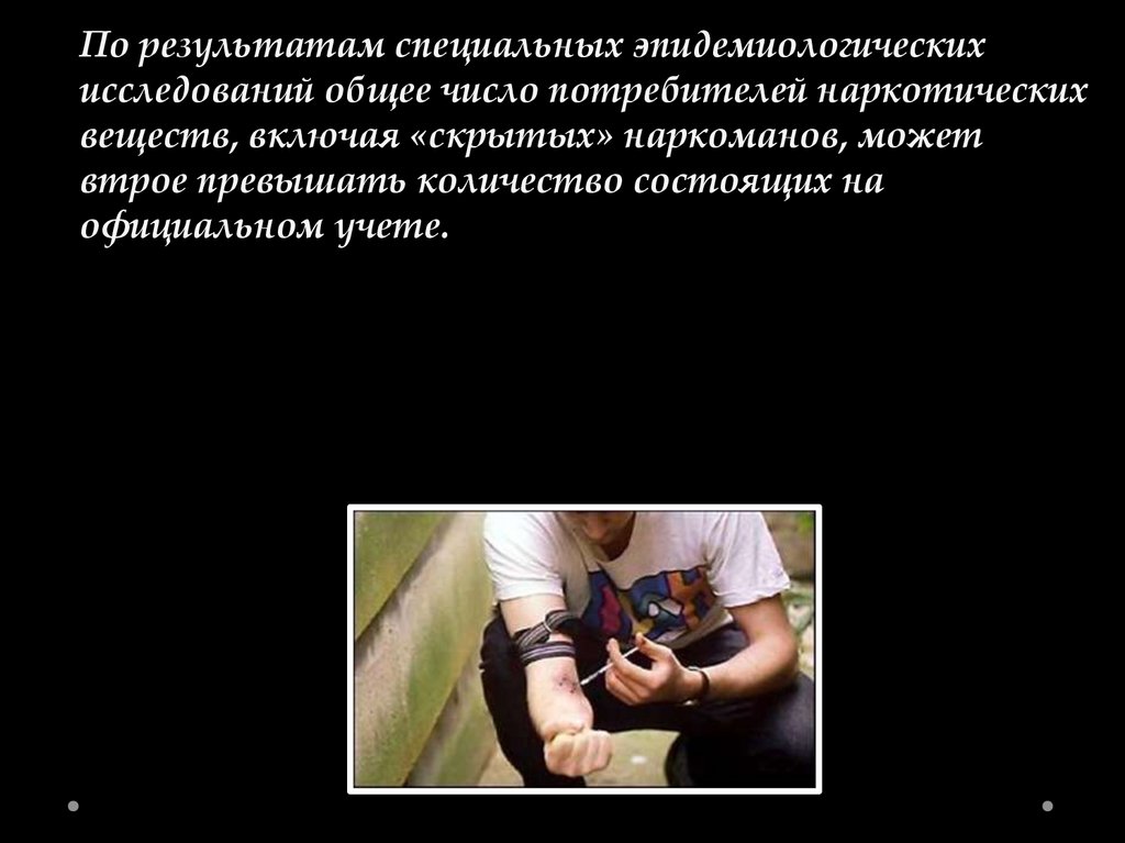 По результатам специальных эпидемиологическихисследований общее число потребителей наркотических