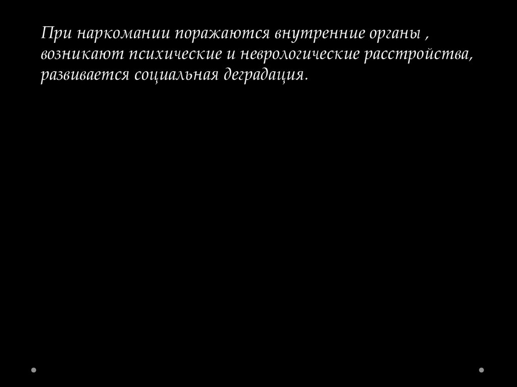 При наркомании поражаются внутренние органы ,возникают психические и неврологические расстройства,