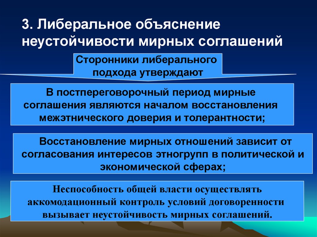 3. Либеральное объяснениенеустойчивости мирных соглашений