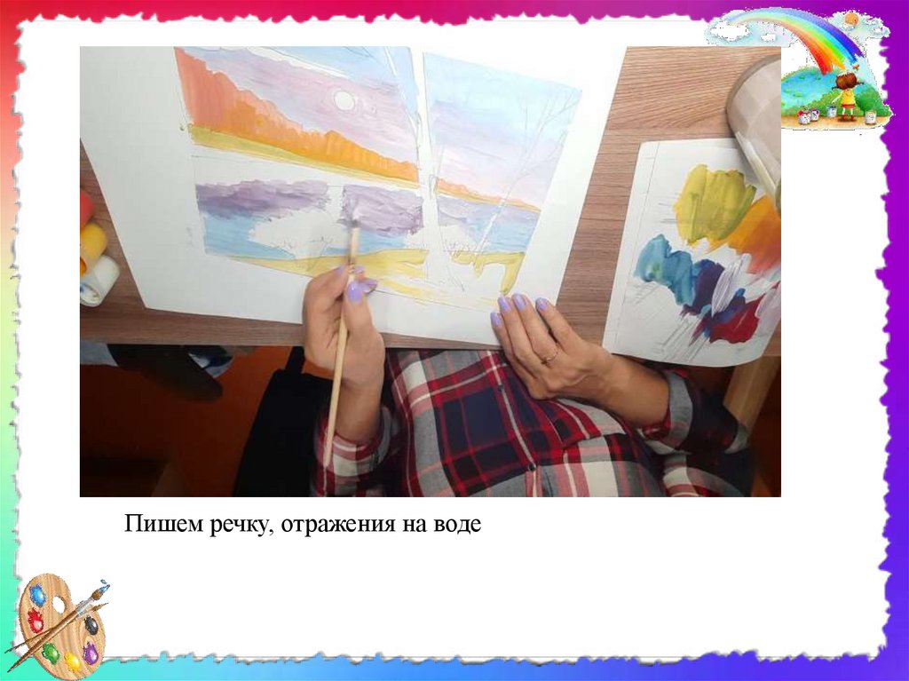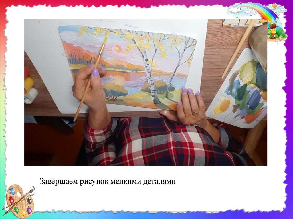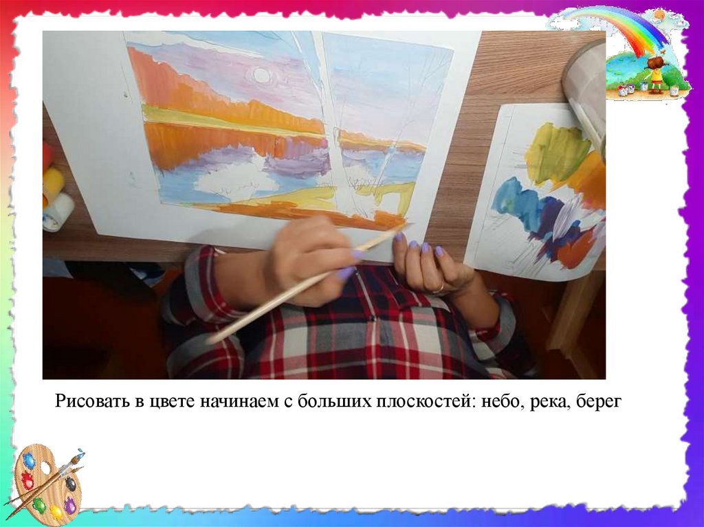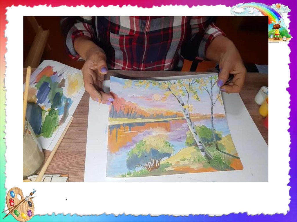• Чтобы пейзаж на листе бумаги не выглядел