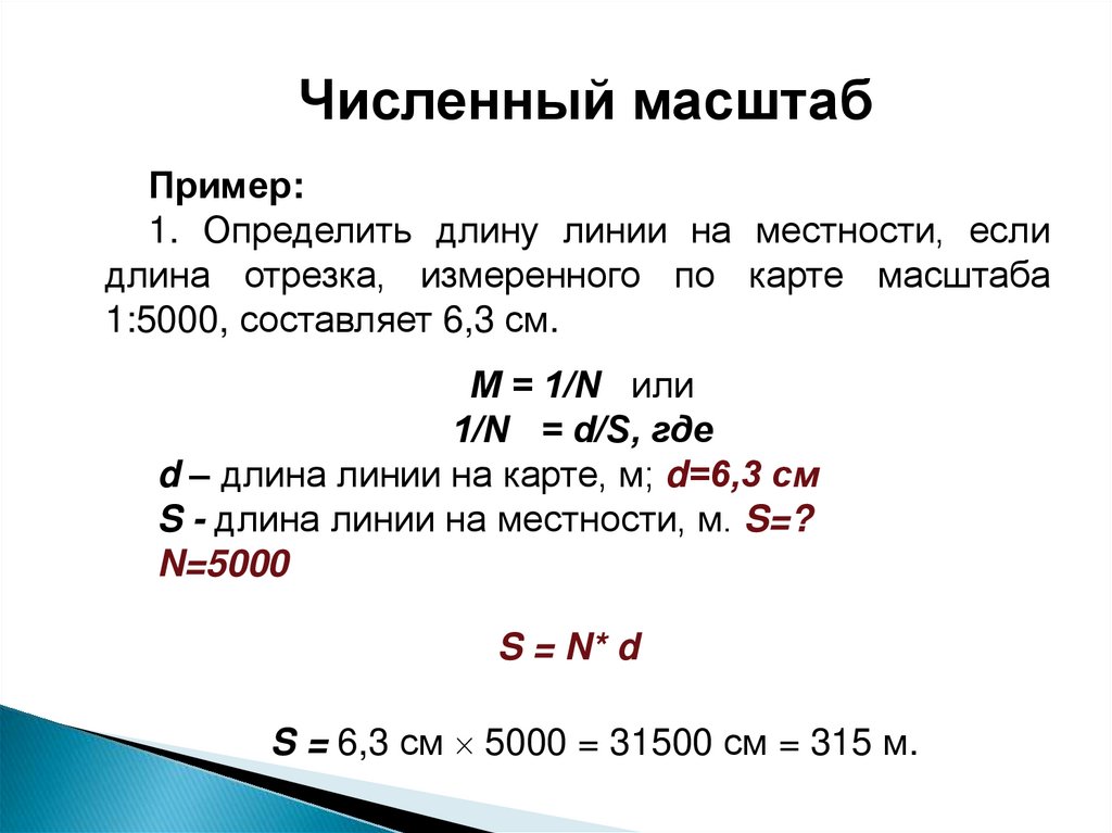 S = 6,3 см 5000 = 31500 см = 315 м.