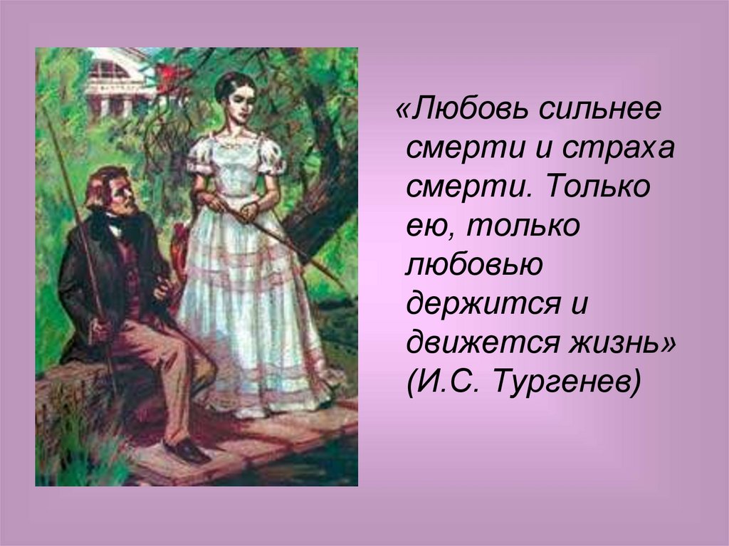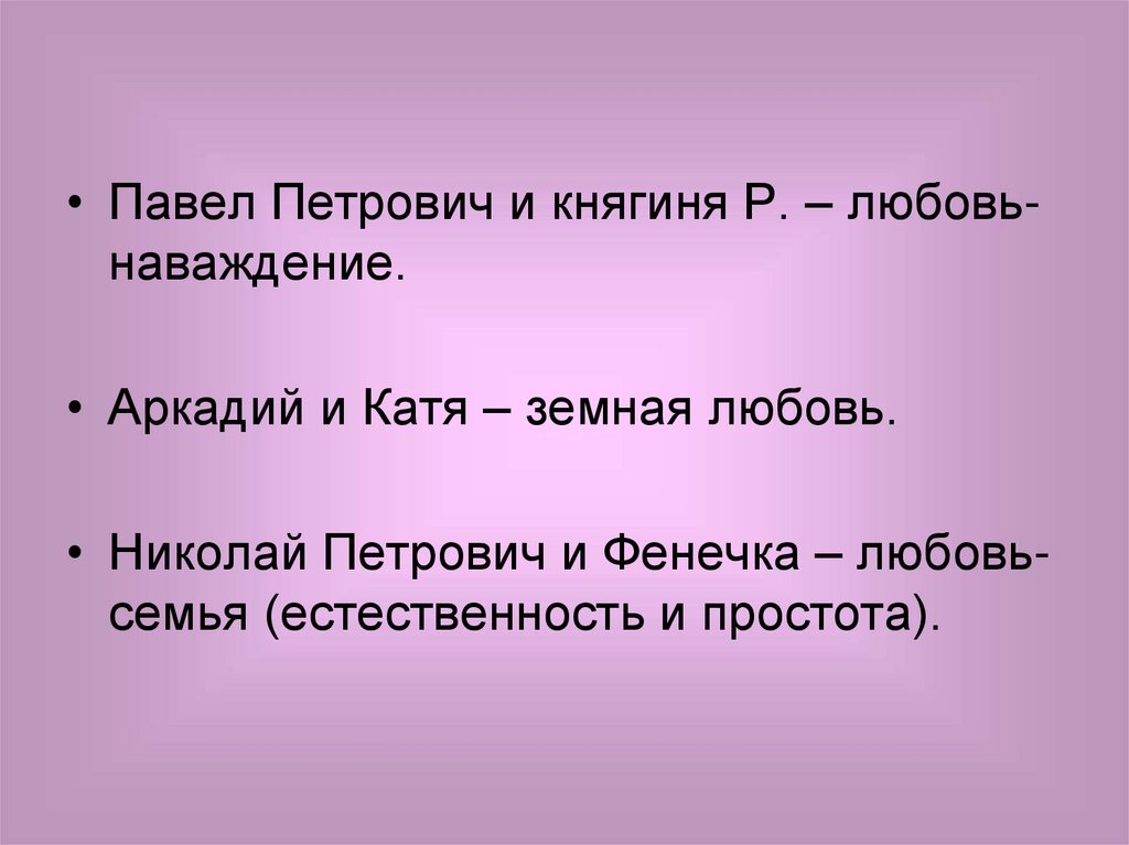 • Николай Петрович и Фенечка – любовьсемья (естественность и простота).
