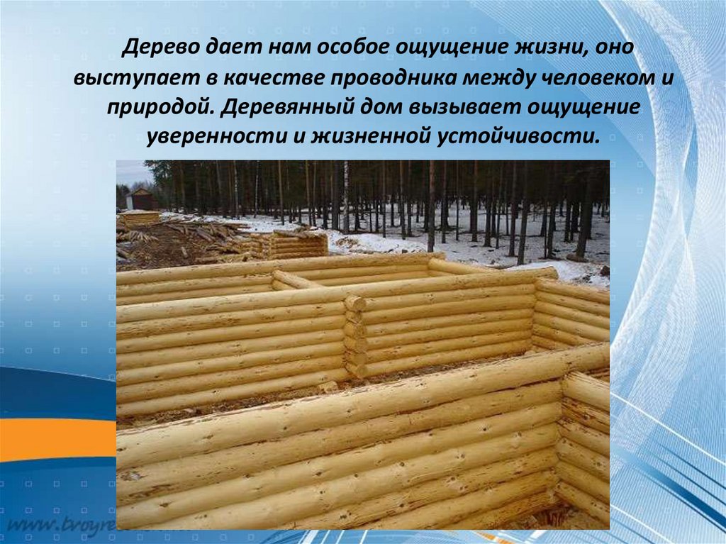 Дерево дает нам особое ощущение жизни, оновыступает в качестве проводника между человеком и