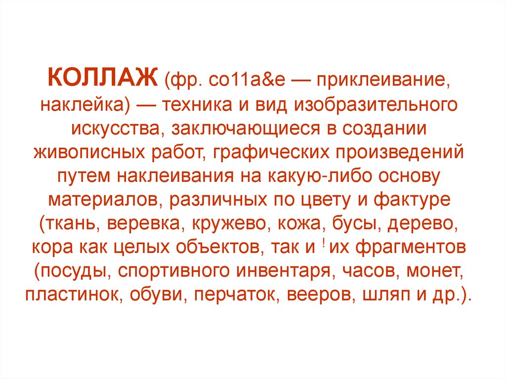 КОЛЛАЖ (фр. со11а&е — приклеивание,наклейка) — техника и вид изобразительного