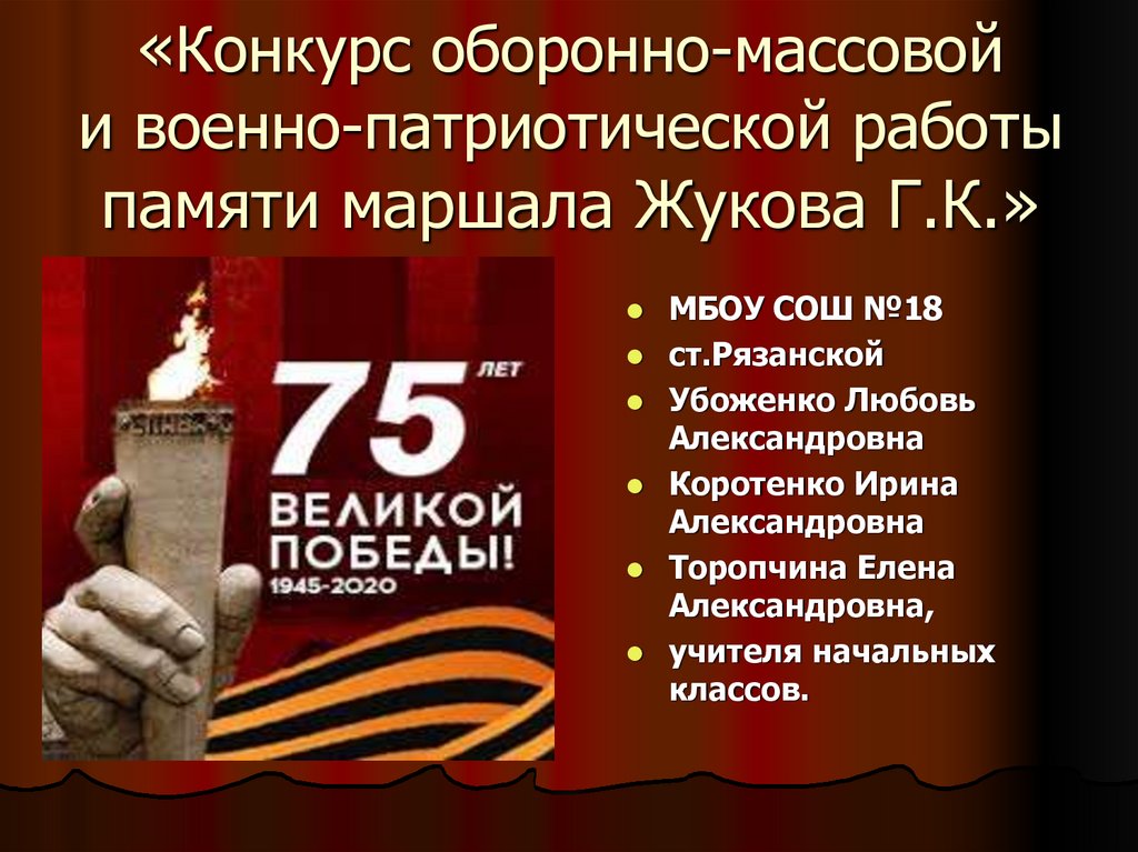 1. «Конкурс оборонно-массовой и военно-патриотической работы памяти маршала Жукова Г.К.»