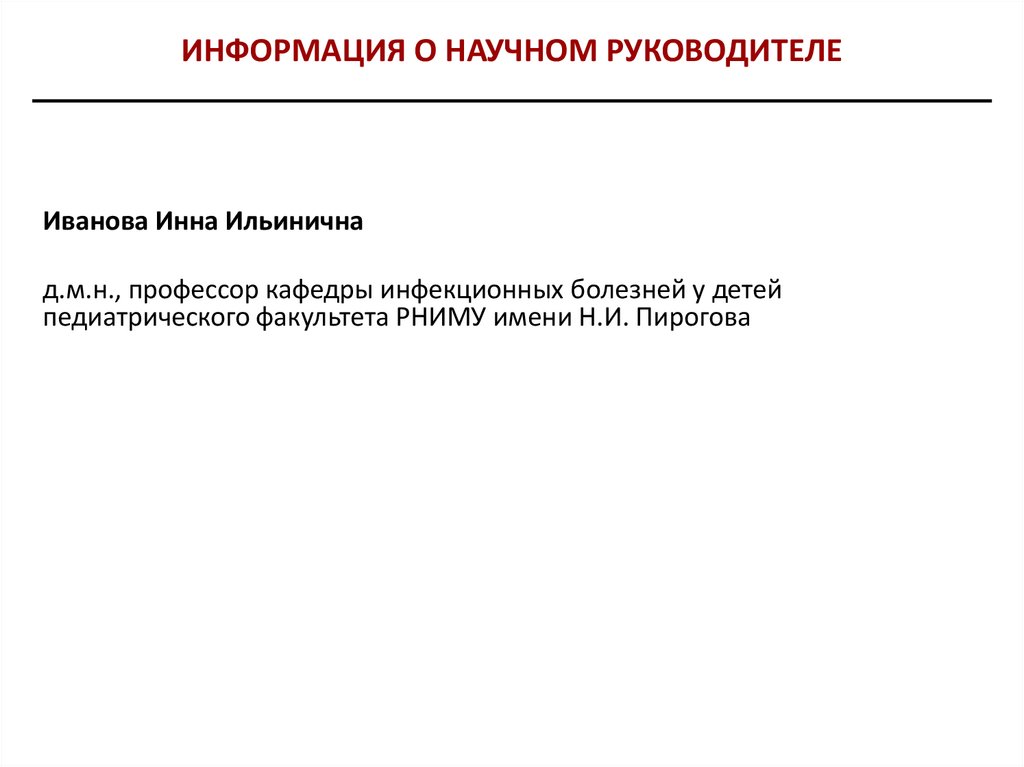 ИНФОРМАЦИЯ О НАУЧНОМ РУКОВОДИТЕЛЕИванова Инна Ильинична