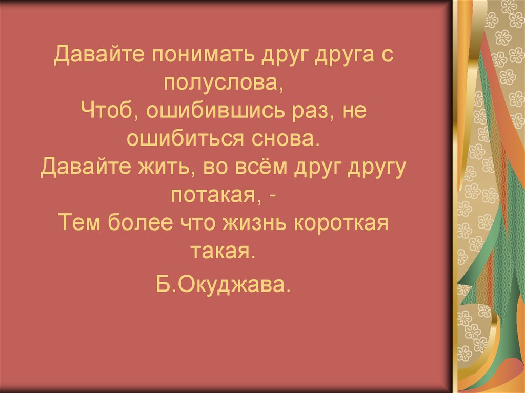 Давайте понимать друг друга сполуслова,