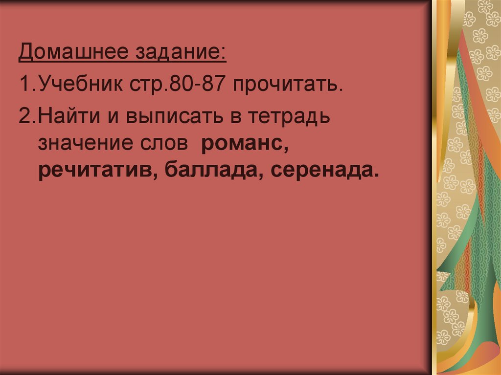 речитатив, баллада, серенада.
