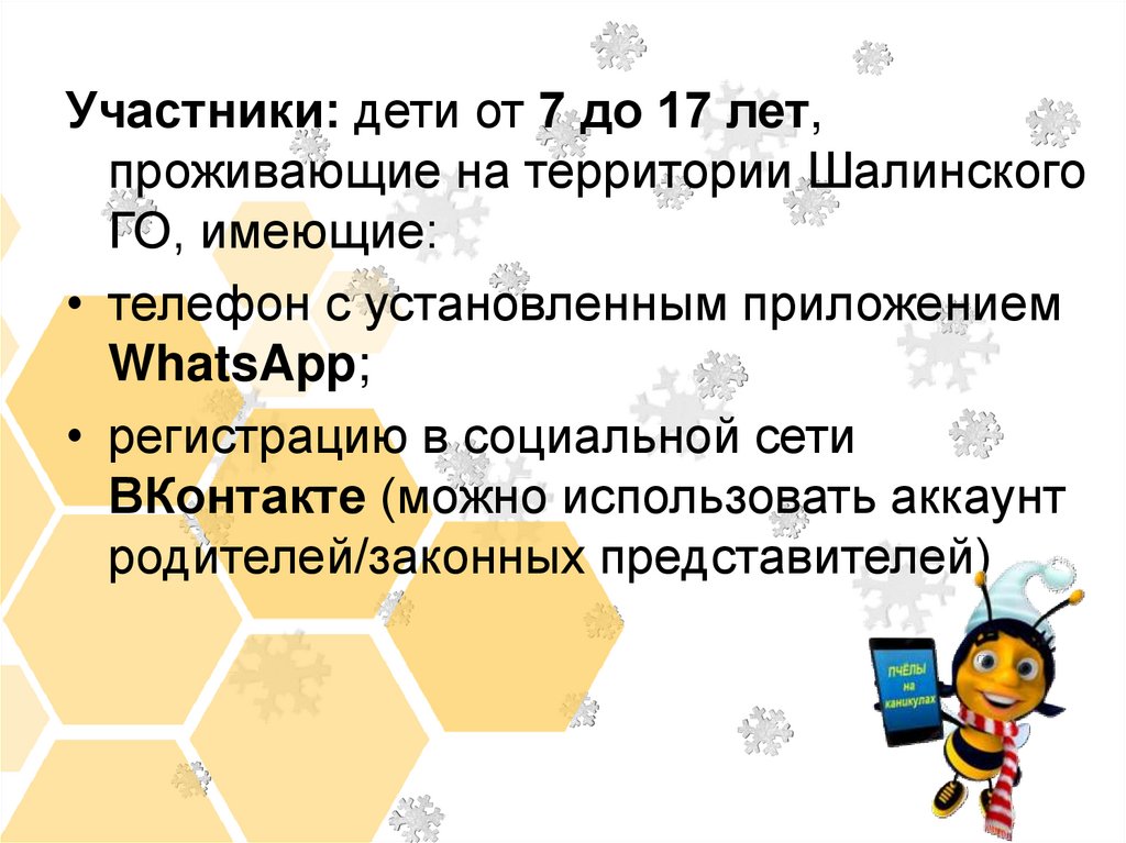 Участники: дети от 7 до 17 лет,проживающие на территории Шалинского
