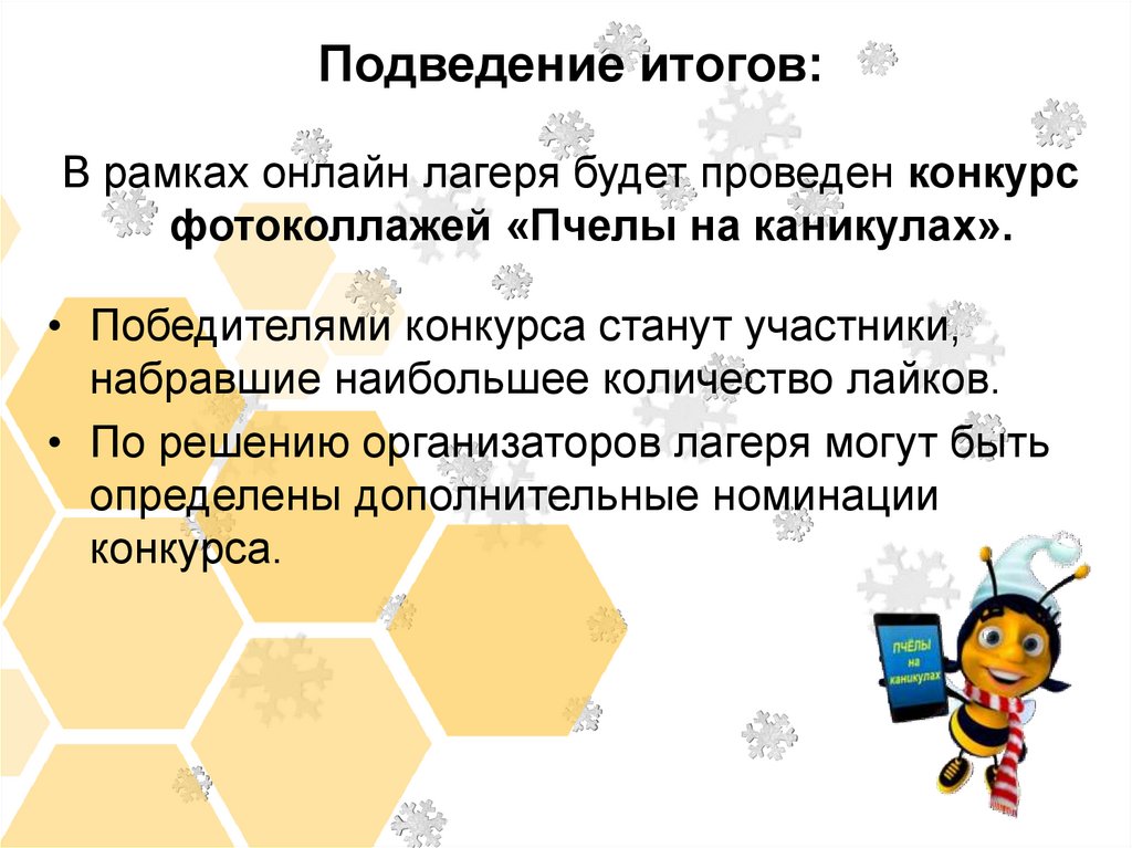 Подведение итогов:В рамках онлайн лагеря будет проведен конкурс