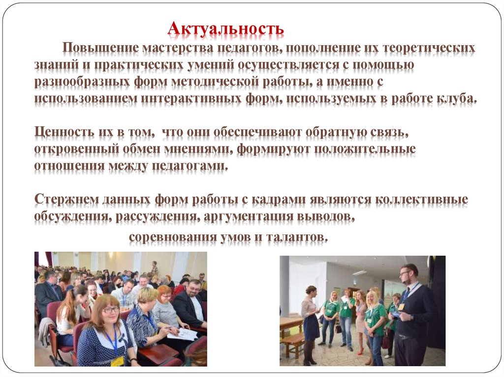 АктуальностьПовышение мастерства педагогов, пополнение их теоретических