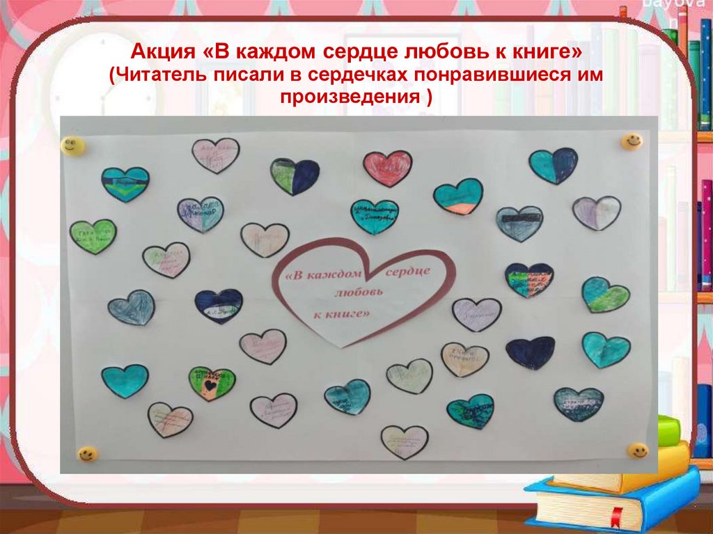 Акция «В каждом сердце любовь к книге»(Читатель писали в сердечках понравившиеся им