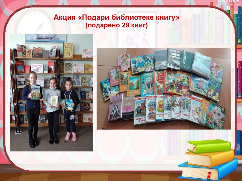 Акция «Подари библиотеке книгу»(подарено 29 книг)