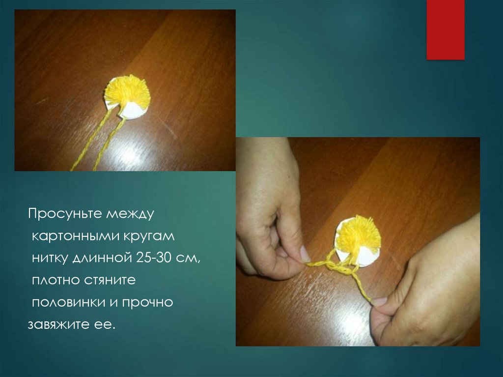 Чтобы изготовить помпончики разныхразмеров, надо подготовить