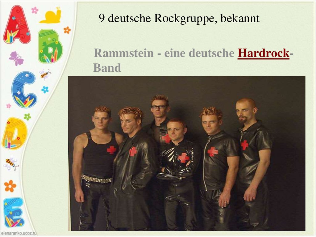 9 deutsche Rockgruppe, bekanntRammstein - eine deutsche HardrockBand