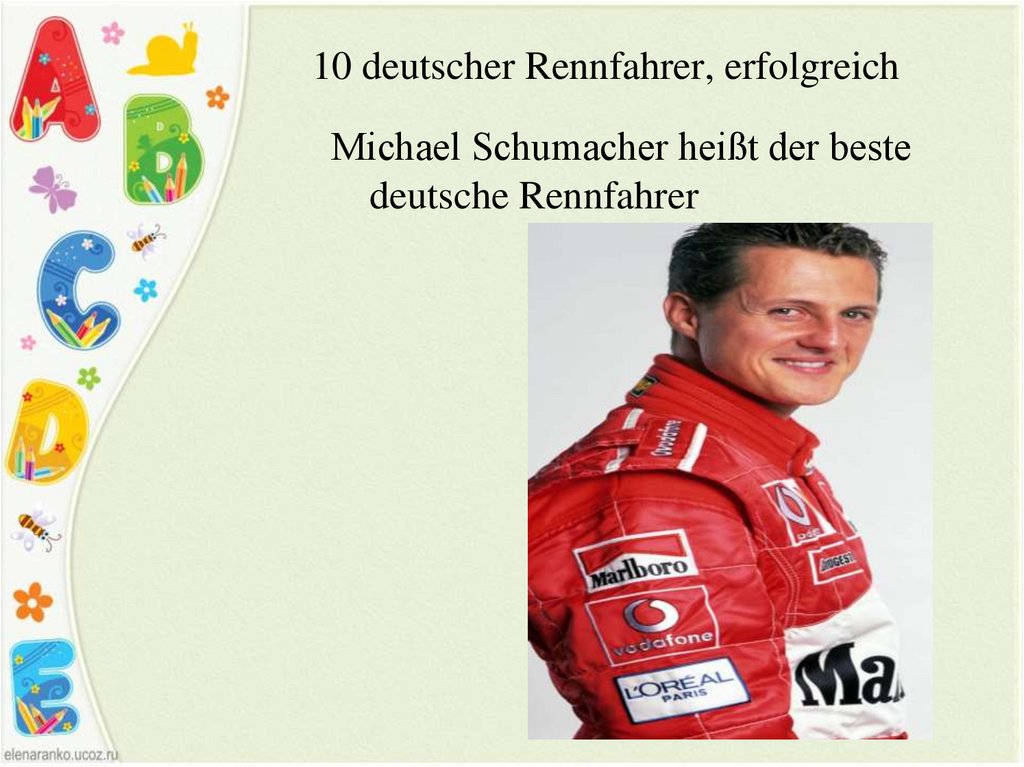 10 deutscher Rennfahrer, erfolgreichMichael Schumacher heißt der beste