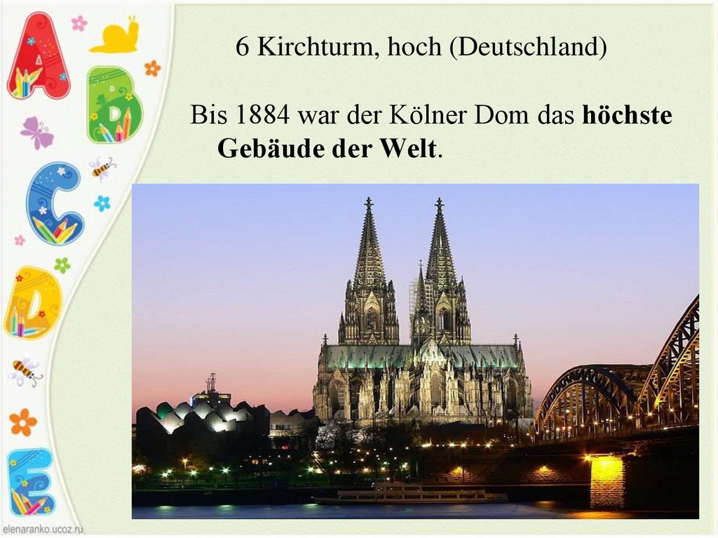 6 Kirchturm, hoch (Deutschland)Bis 1884 war der Kölner Dom das höchste