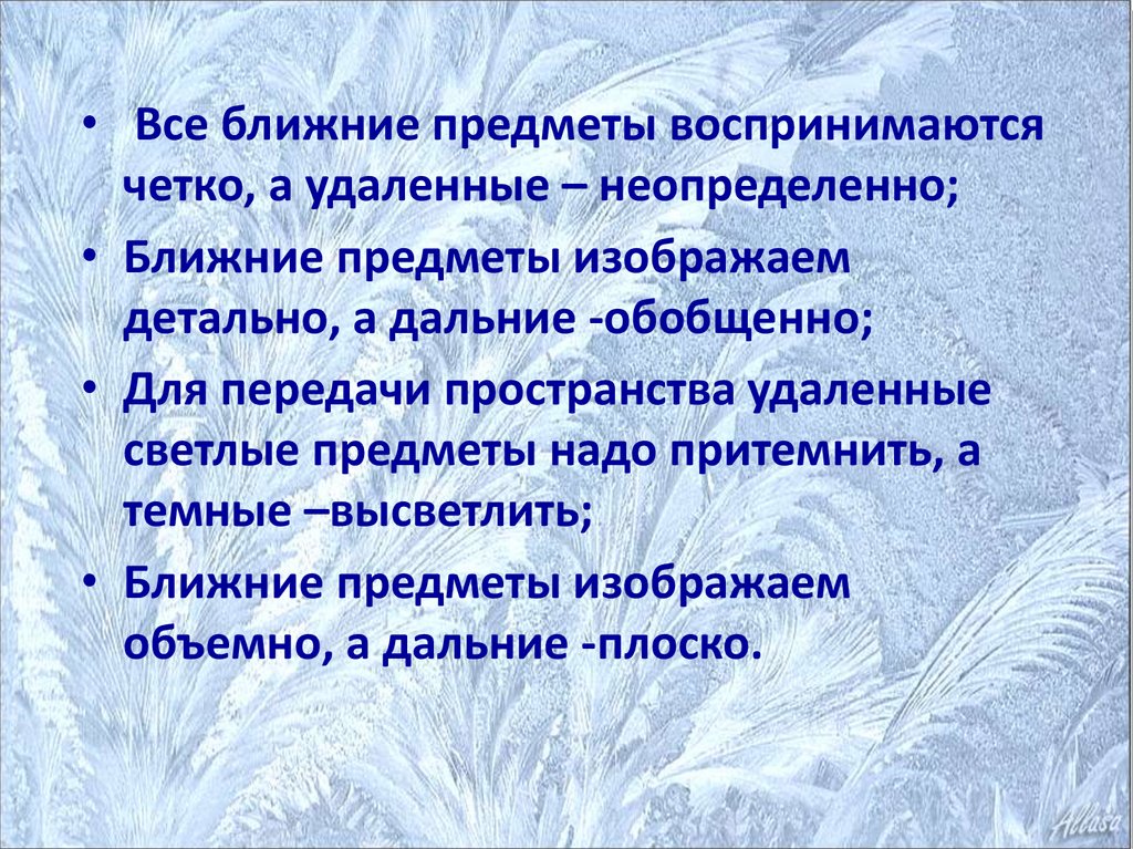 • Ближние предметы изображаем