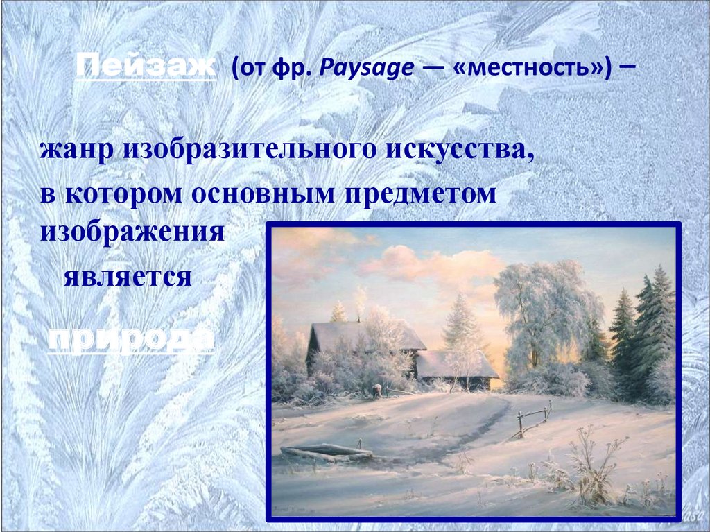 Пейзаж (от фр. Paysage — «местность») –жанр изобразительного искусства,
