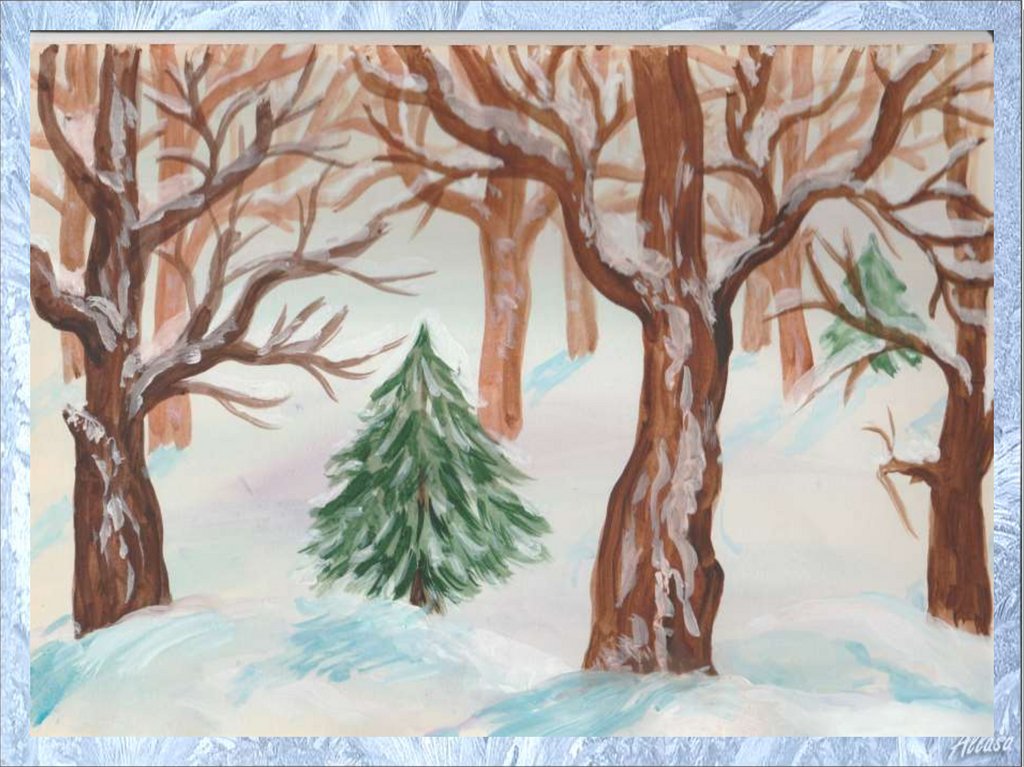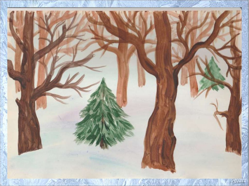 Этапы работы над пейзажем «Зимний лес»21.