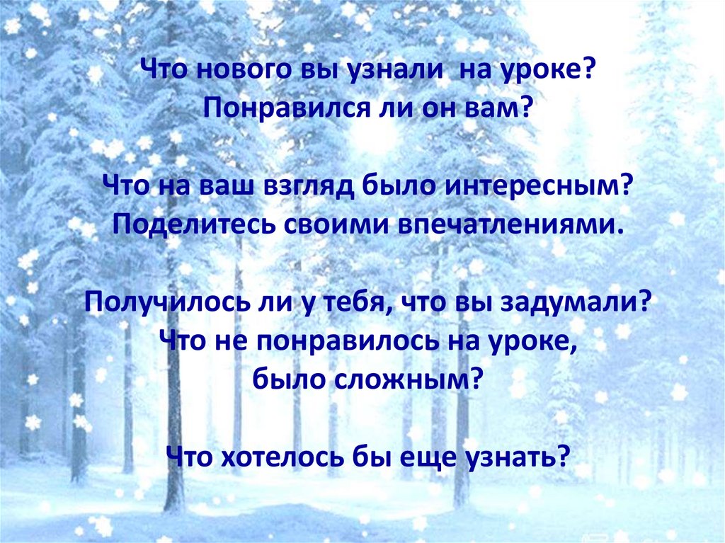 Что нового вы узнали на уроке?Понравился ли он вам?