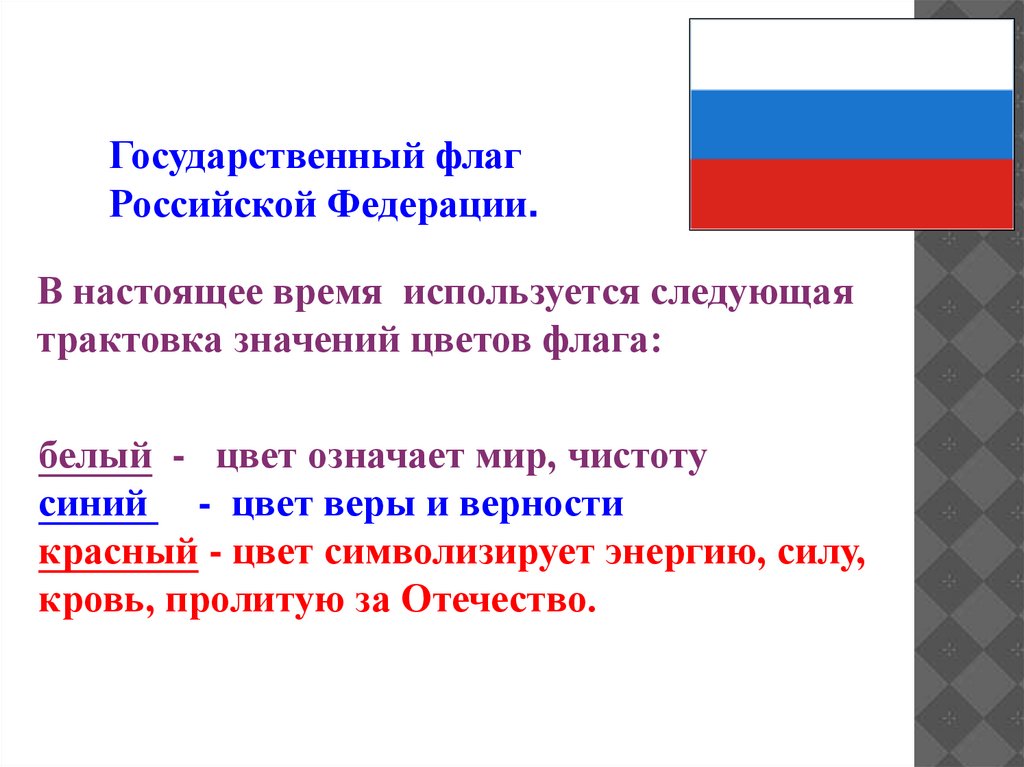 трактовка значений цветов флага: