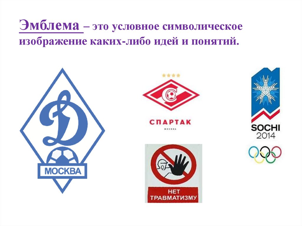 Эмблема – это условное символическоеизображение каких-либо идей и понятий.
