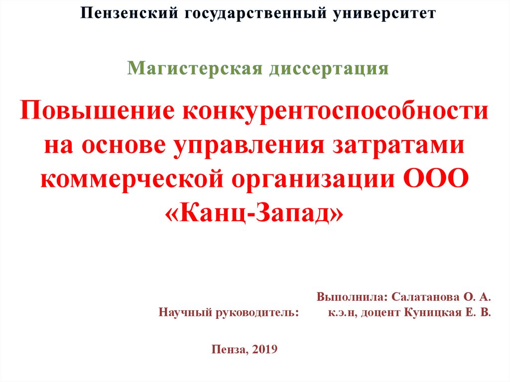 Повышение конкурентоспособности на основе управления затратами коммерческой организации ООО «Канц-Запад»