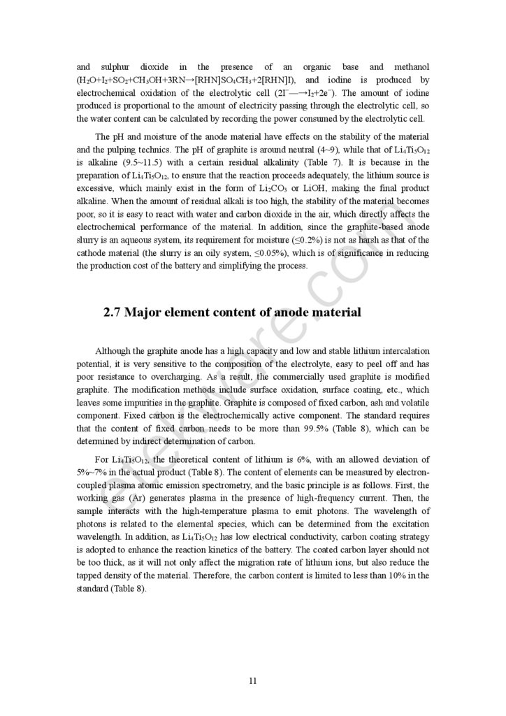 2.8 Impurity element content of anode materialImpurity elements in anode materials are components other than the main elements and