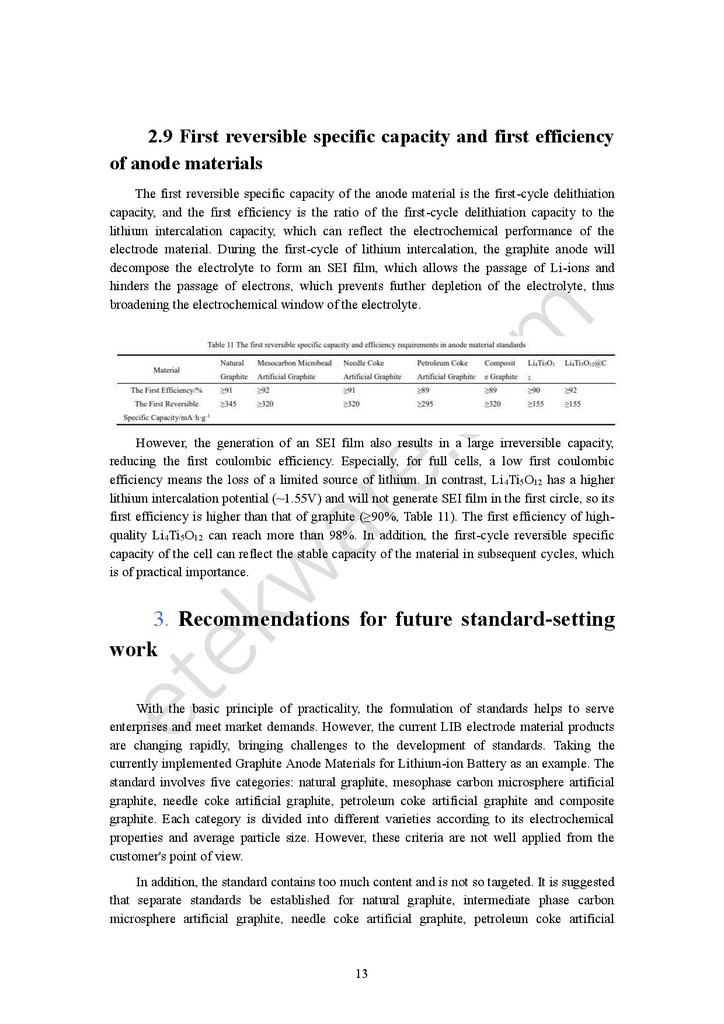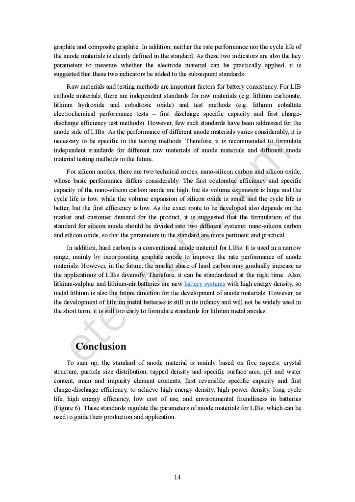 graphite and composite graphite. In addition, neither the rate performance nor the cycle life ofthe anode materials is clearly defined in the standard. As these two indicators are also the key