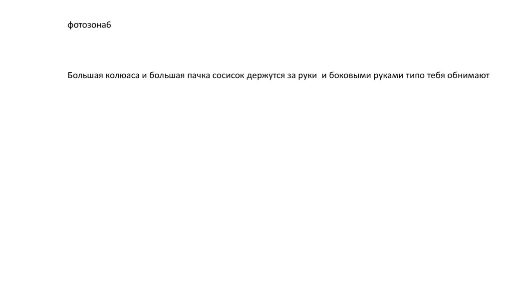 фотозона6Большая колюаса и большая пачка сосисок держутся за руки и боковыми руками типо тебя обнимают