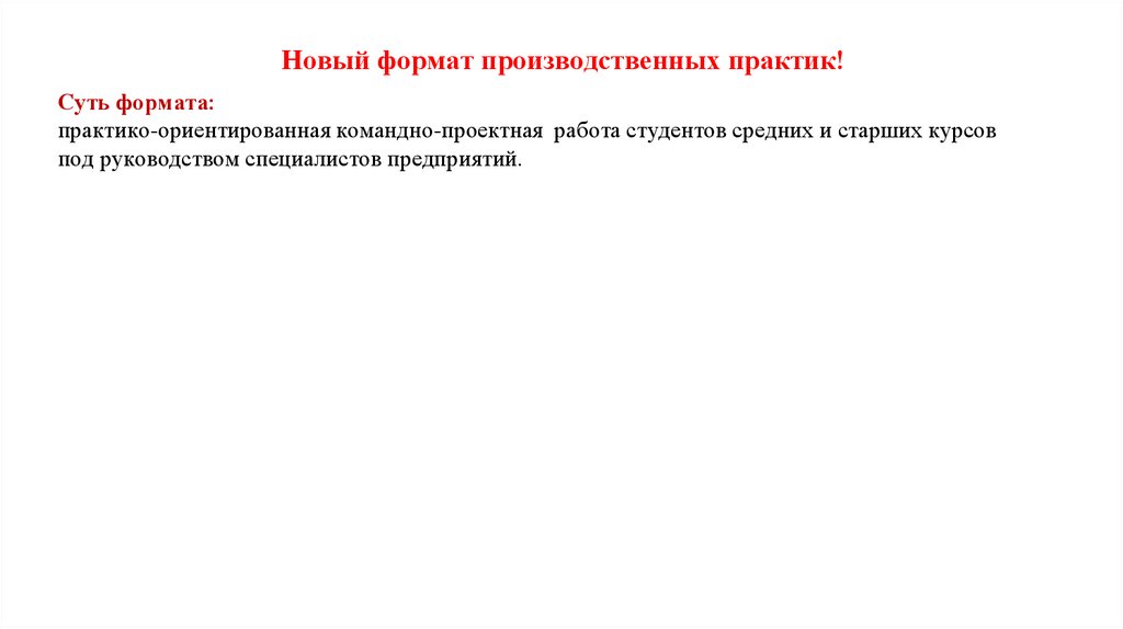 Новый формат производственных практик!Суть формата: