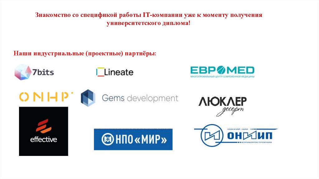Наши индустриальные (проектные) партнёры: