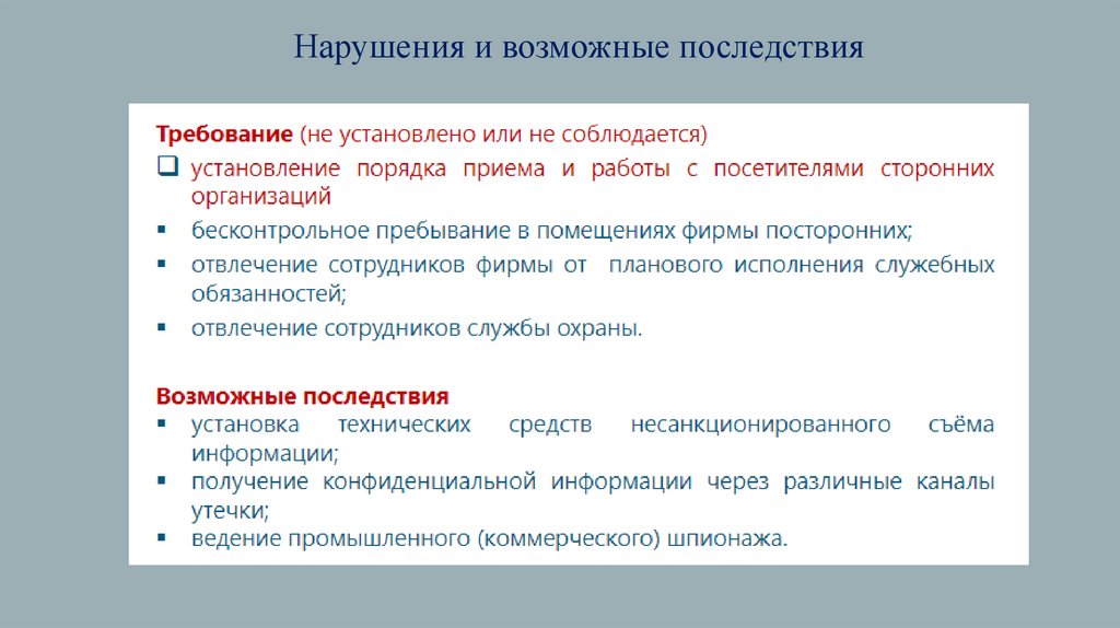 Нарушения и возможные последствия11.