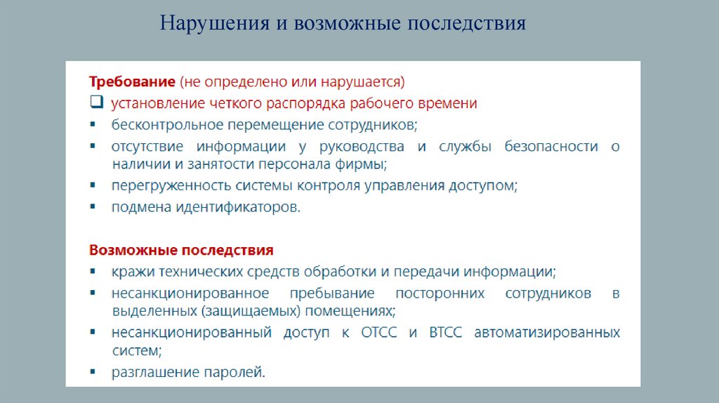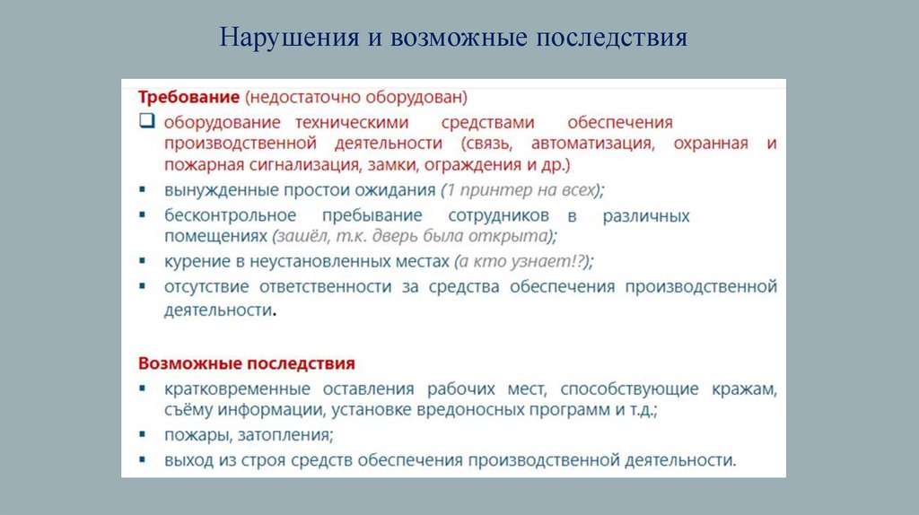 Нарушения и возможные последствия13.