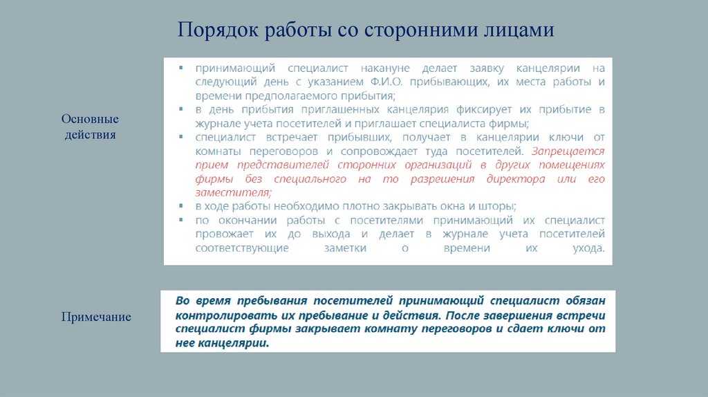 Порядок работы со сторонними лицамиОсновные