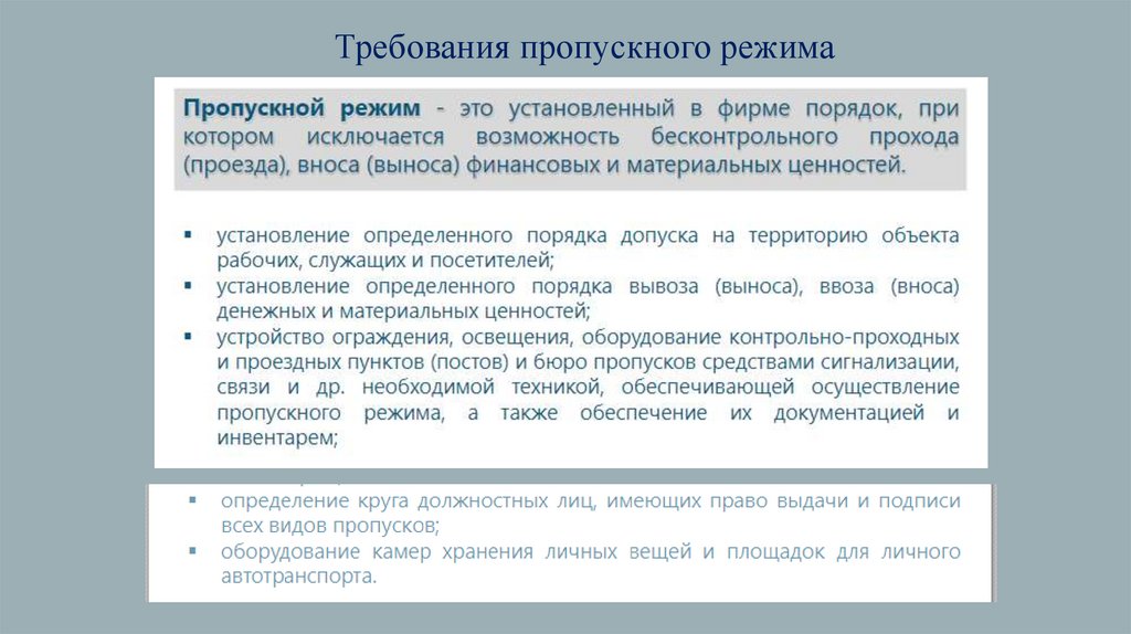 Требования пропускного режима16.